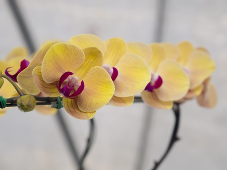 Beautiful yellow orchid phalaenopsis in greenhouse