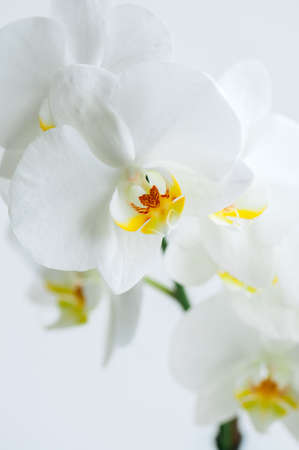 White opening phalaenopsis flowers (orchid) on light yellow background