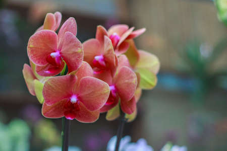 Orchid flower in garden at winter or spring day for postcard beauty and agriculture idea concept design. Phalaenopsis Orchid.