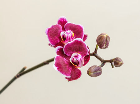Pink phalaenopsis flowers (orchid) on light yellow background