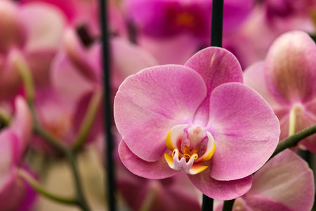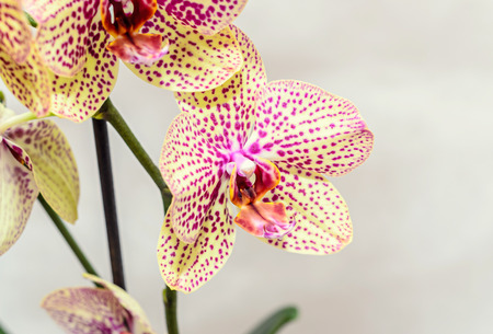Close up of orchid flower. Beautiful branch of pink orchid
