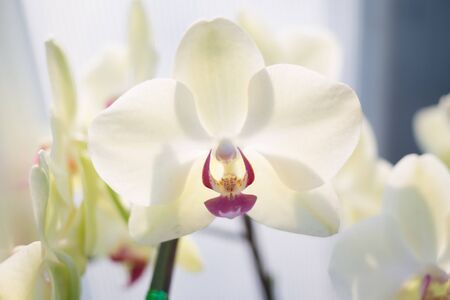 Beautiful Orchid flower on a window. Flower in the house. Decora