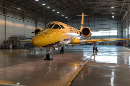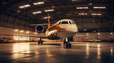 Luxorious Business Jet in Hangar. Ai generative