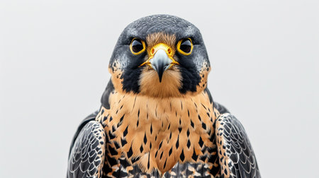 Close-up portrait of a peregrine falcon.