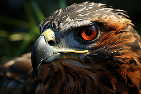 Close-up view of bird of prey. This image can be used to showcase intricate details and stunning features of this majestic creature.