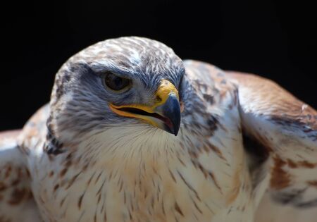 Close-up portrait of a Hawk with a black backgroung