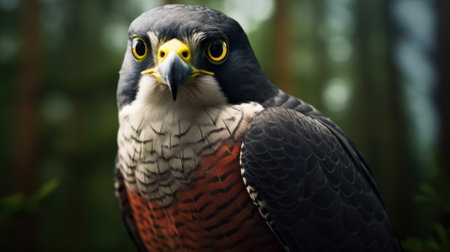 An AI generated illustration of a majestic falcon stares directly into the camera
