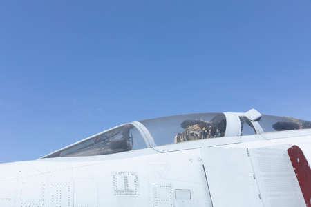 Airforce day background. Cabin of fighting jet.