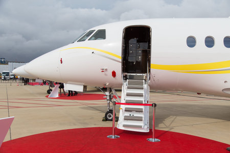 Modern and comfortable business jet plane in the afternoon at the airport