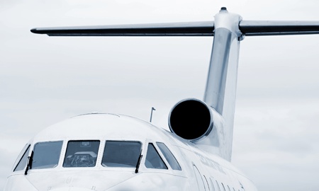 Luxury Business Private Jet plane at airfield toned in blue