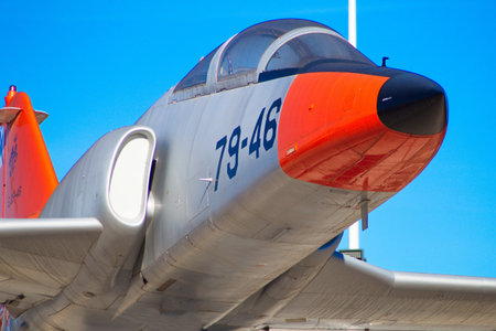 old military aircraft detail and blue sky