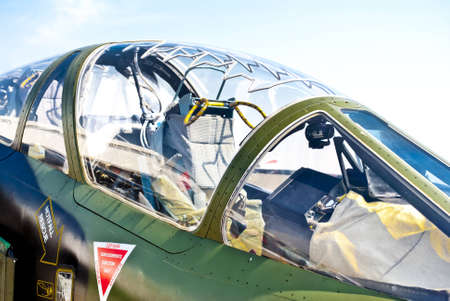 Detail shot with the cockpit of a big military airplane