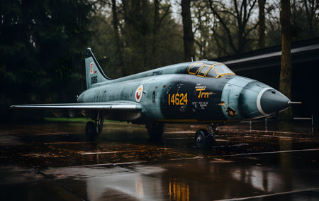 Vintage military aircraft. Combat jet in sepia.