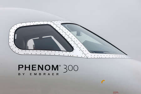 Farnborough, UK - July 20, 2014: Embraer Phenom 300 Business jet aircraft.