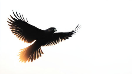 A hawk soars gracefully through a sunlit sky, wings fully extended, with clouds in the background and sunlight illuminating its feathers.