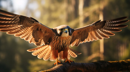 Majestic Bird of Prey in Flight against Misty Forest Background, Wild Raptor Soaring with Outstretched Wings in Natural Habitat AI Generative