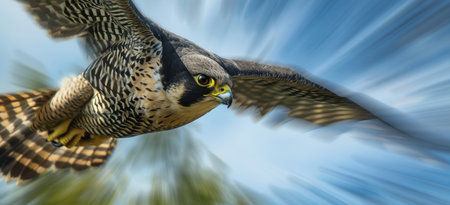 Peregrine Falcon in Mid-Dive with Motion Blur Emphasizing Speed and Focus
