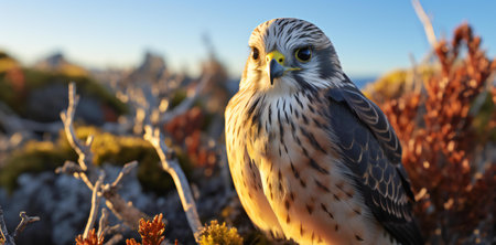 A breathtaking close-up of a Peregrine Falcon in its natural habitat Sharp details capture the bird's fierce beauty and predatory focus Ideal for wildlife enthusiasts, birdwatchers, and ornithologists seeking high-resolution nature photography AI Generative