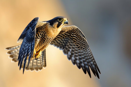 The Peregrine Falcon in full flight, wings outstretched, as it effortlessly slices through the air