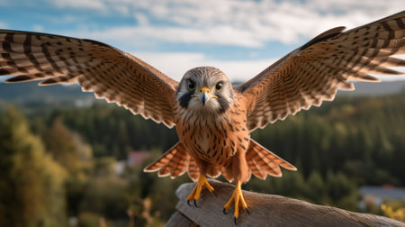 discover the stunning beauty of a kestrel in this photo-realistic image. with every detail meticulously crafted, this depiction captures the essence of this majestic bird of prey. from its sharp, piercing gaze to its intricately patterned feathers, this kestrel is sure to leave a lasting impression. ideal for nature enthusiasts and birdwatchers alike, this image is a must-see.keywords: photo-realistic, kestrel, bird of prey, nature, birdwatchers,