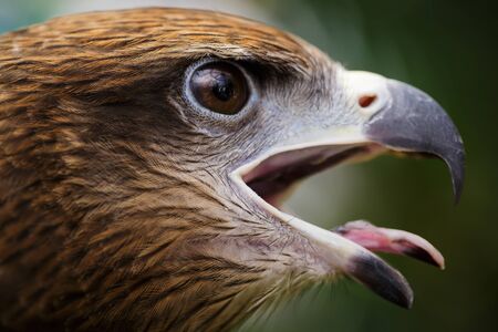 closeup from king buzzard with green background