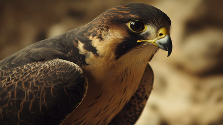 A close-up of a majestic falcon, its sharp beak and fierce eyes reflecting its role as a skilled hunter.