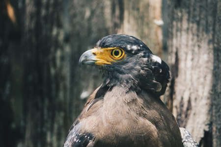 Serpent Eagle, Crested Serpent Eagle (Spilornis cheela) sitting in the branch with wood background