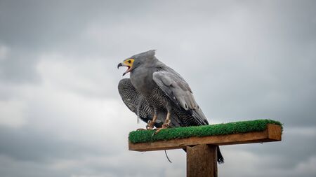 Buzzard eagle over the wall. Closeup portrain Buteo buteon of wild bird. eagle symbolize courage, strength and immortality
