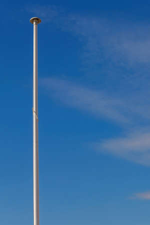 Empty Tall White Flagpole Without a Flag Over Blue Sky
