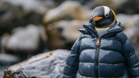 King penguin in a down jacket