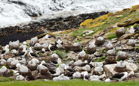 Close-up of a Black-browed albatross colony in Falkland Islands