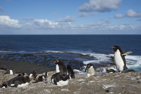 Gentoo Penguin - Pygoscelis papua -Gentoo Penguin colony - Parents and chicks - Falkland Islands