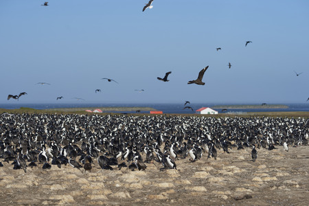Large colony of Imperial Shag (Phalacrocorax atriceps albiventer) on Bleaker Island on the Falkland Islands