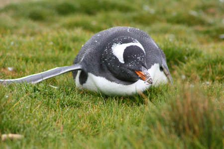 Close up of a Gentoo penguin chick in the Falkland Islands.