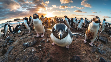 A group of wild penguins on the beach