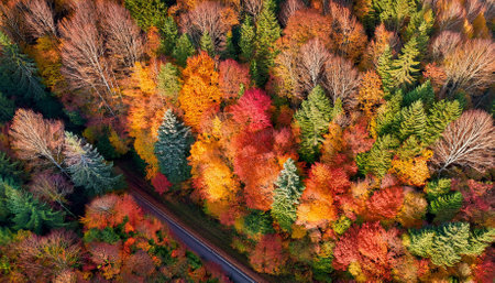 autumnrs colorful foliage in transition overhead forest scene