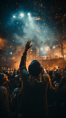 immerse yourself in the electrifying atmosphere of a live music concert. experience the thrill of the crowd and the vibrant stage lights at a music festival