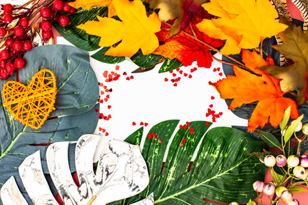 background of autumn leaves. Autumn background. composition with picture frame