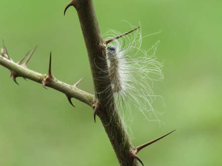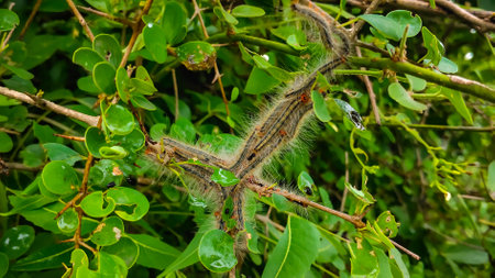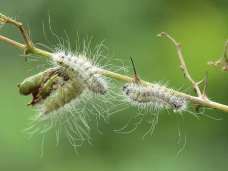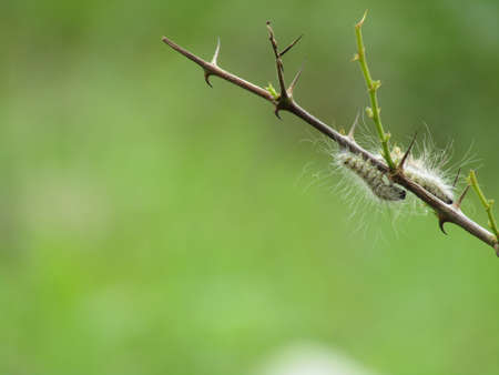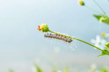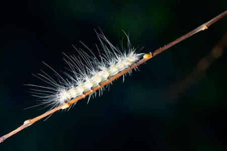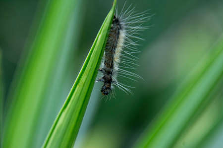 Gypsy moth or spongy moth , Lymantria dispar, caterpillar crawling and climbing. Selective focus technique is used.