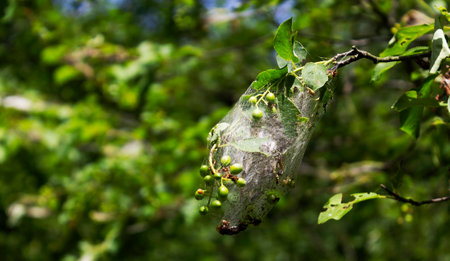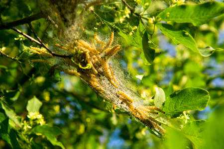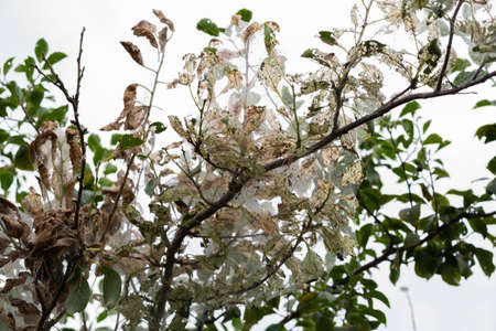 garden orchard pests - tree foliage destroyed by caterpillar invasion