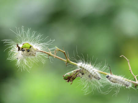 Caterpiller of Pest fall webworm, Hyphantria cunea on the branch