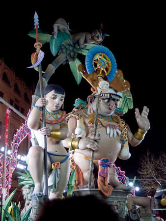 VALENCIA,SPAIN - MARCH 17: Las Fallas,papermache models are constructed then burnt in the traditional celebration in praise of St Joseph on March 17,2012 in Valencia,Spain.