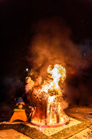 VALENCIA,SPAIN - MARCH 18: Las Fallas,papermache models are constructed then burnt in the traditional celebration in praise of St Joseph on March 18,2016 in Valencia,Spain.