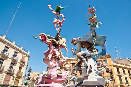 VALENCIA,SPAIN - MARCH 17:Las Fallas,papermache models are constructed then burnt in the traditional celebration in praise of St Joseph on March 17,2012 in Valencia,Spain.