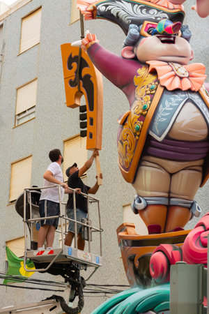 VALENCIA,SPAIN - MARCH 15: Las Fallas,papermache models are constructed then burnt in the traditional celebration in praise of St Joseph on March 15,2017 in Valencia,Spain.
