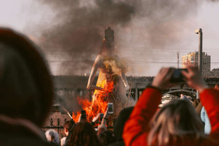 Maslenitsa effigy burning. Volgograd, Russia, March 01, 2020.