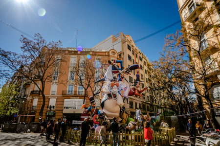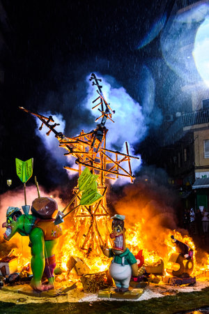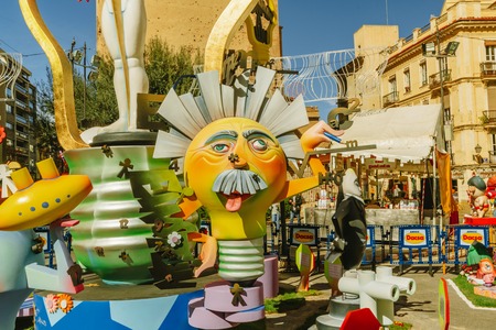 VALENCIA,SPAIN - MARCH 18: Las Fallas,papermache models are constructed then burnt in the traditional celebration in praise of St Joseph on March 18,2016 in Valencia,Spain.