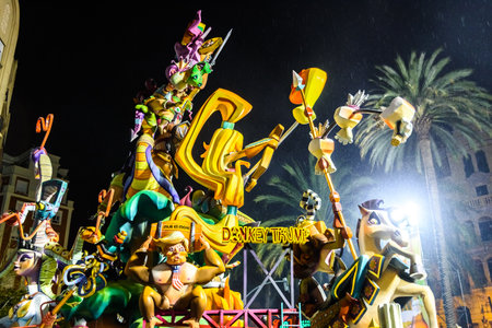 Falla Valencian with caricature of American President Trump, humor.