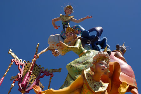 VALENCIA,SPAIN - MARCH 17:Las Fallas,papermache models are constructed then burnt in the traditional celebration in praise of St Joseph on March 17,2012 in Valencia,Spain.