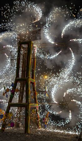 Fireworks castle with pinwheels spinning in Cuenca, Ecuador